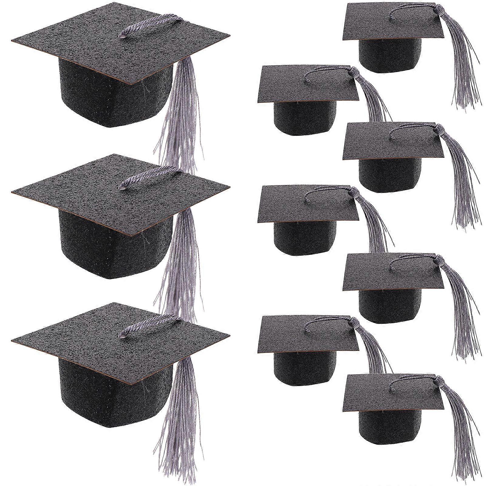 Mini Graduation Hat Goblet Cover For Graduation Party Celebrations In Black Color With Decoration Function 10Pcs
