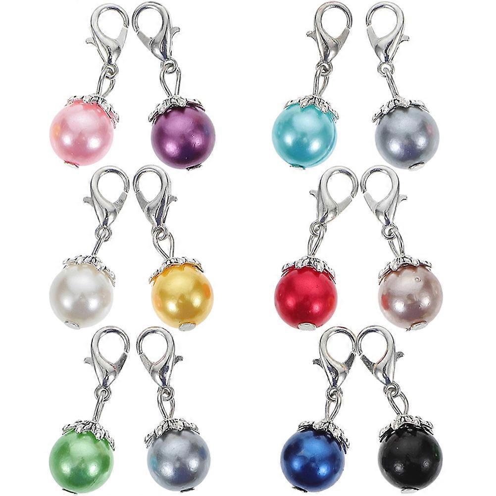 12Pcs Lobster Clasp Charms for Decoration Pearl Design Pendant Set