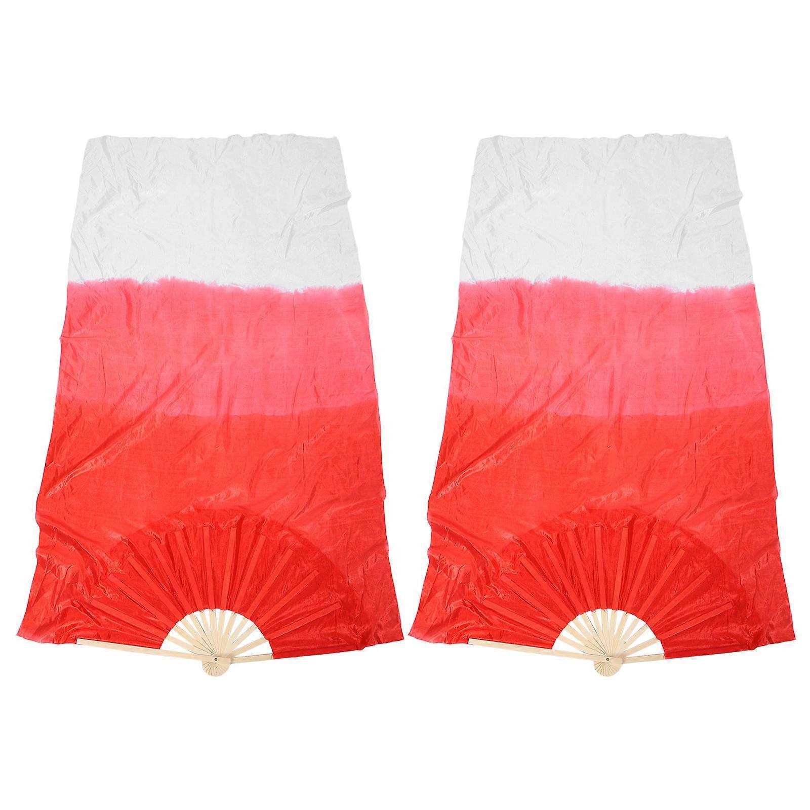 Long Folding Fans Belly Dance Fan Faux Silk Veils for Dancing 2Pcs Bamboo