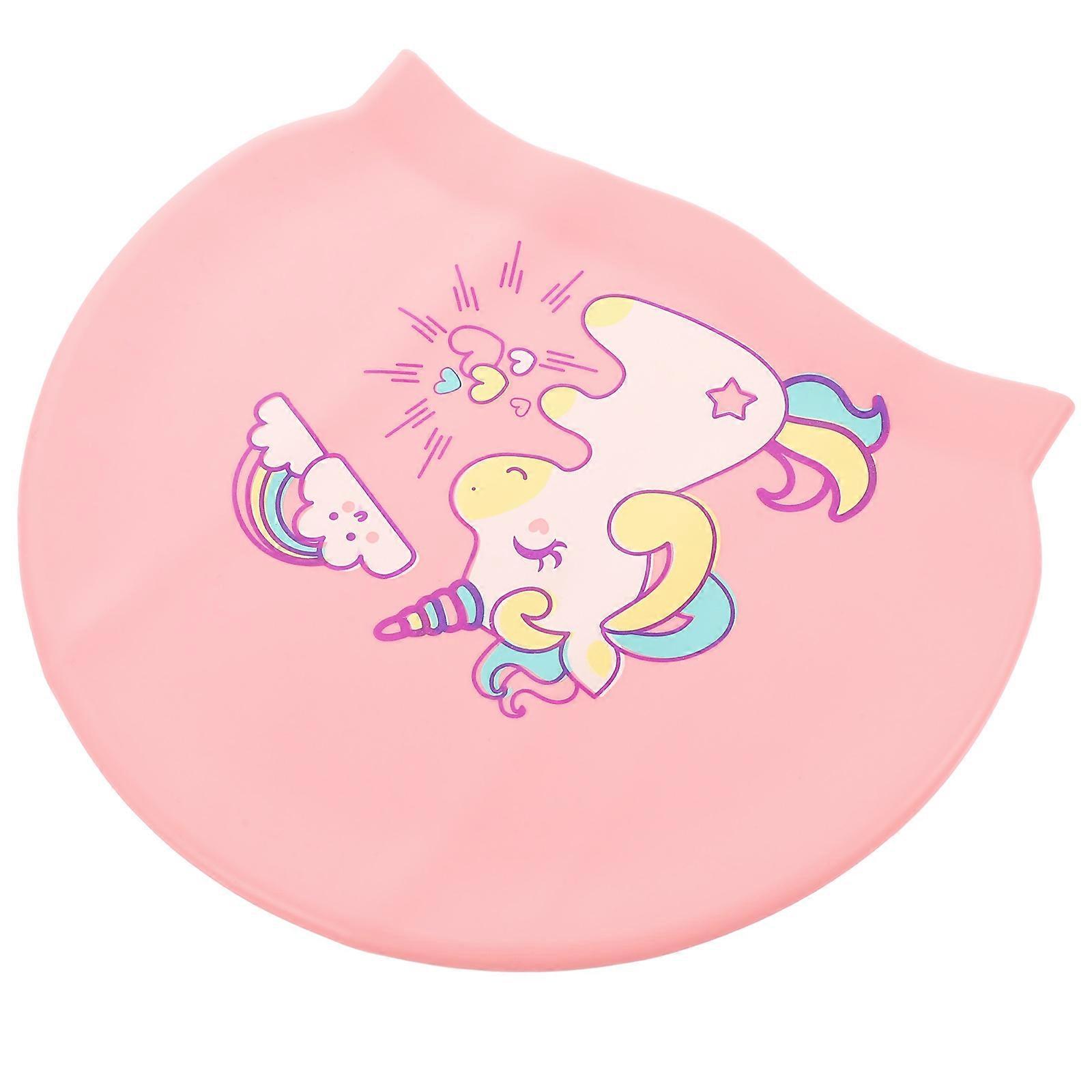 Kids Swim Cap Cartoon Silicone Swimming Cap for Ear Protection Pink