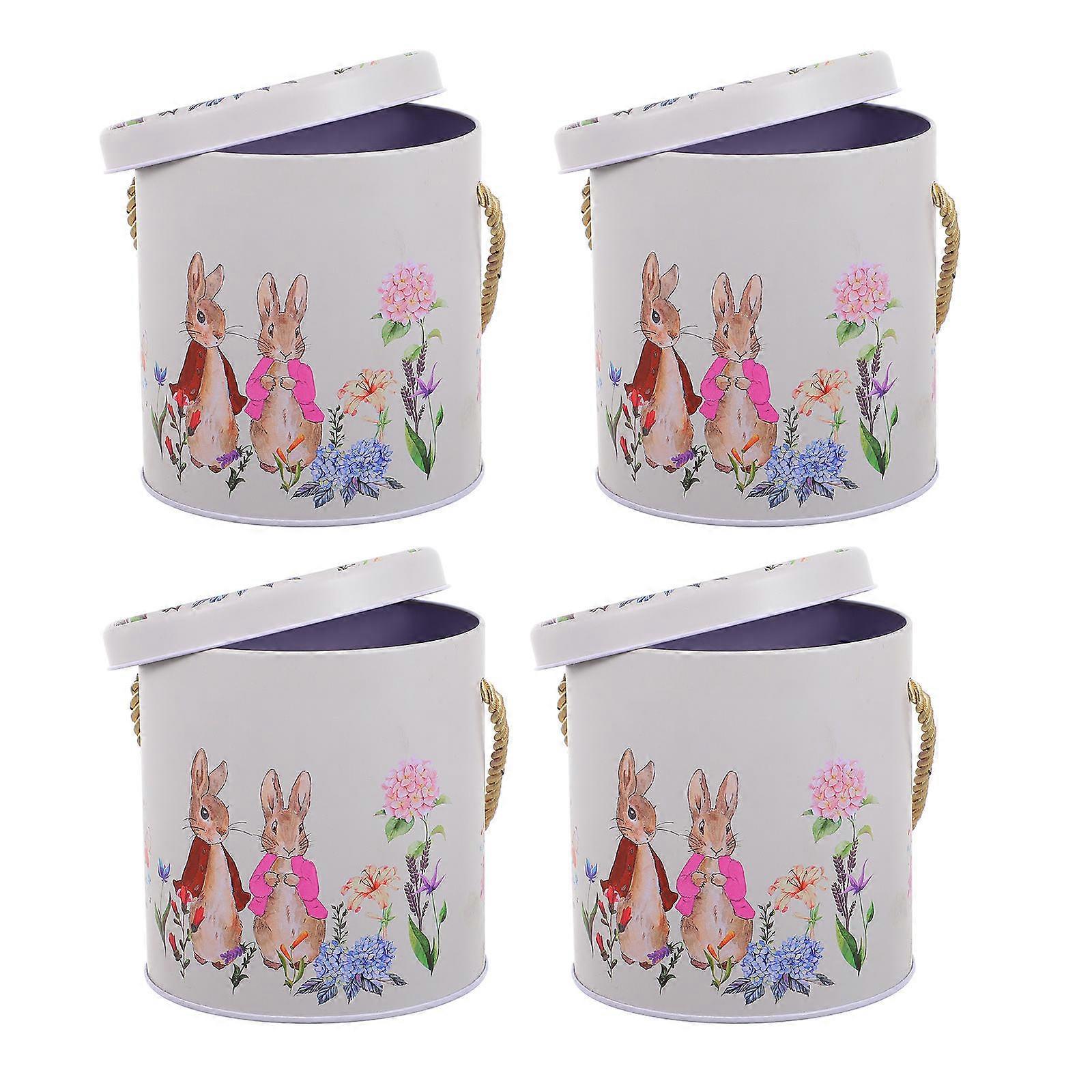 Metal Easter Treat Bucket Square Design Beige Color Storage Holder 4Pack