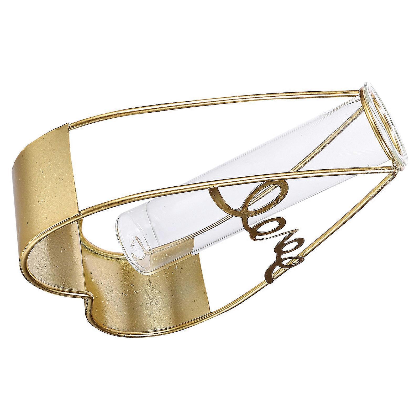Hydroponic Culture Glass Bottle Heart Shaped Flower Vase Home Decor Golden 20X14CM Plant Decoration 1Set