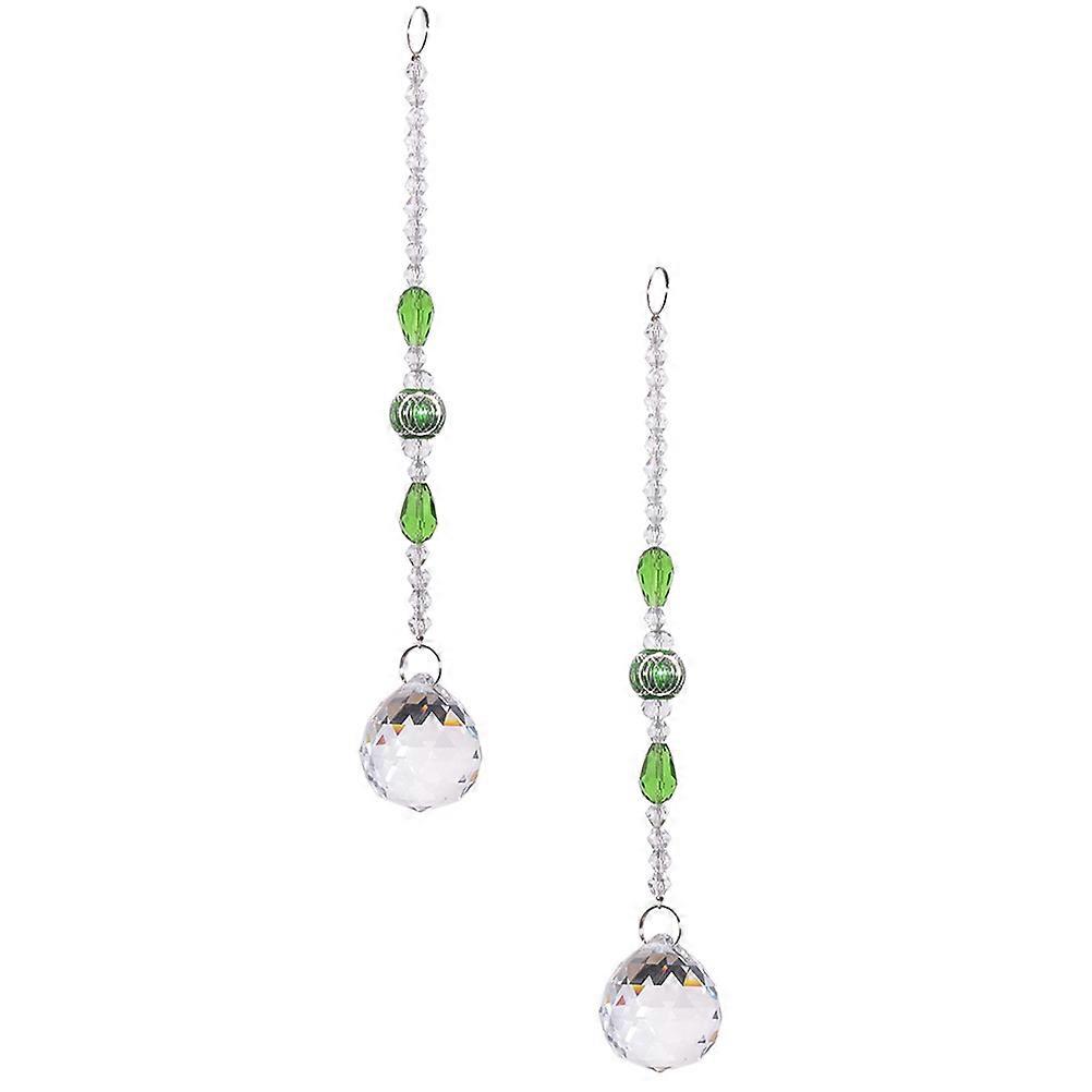 Green Crystal Balls Wall Decoration for Hanging Ornament 2Pcs Set