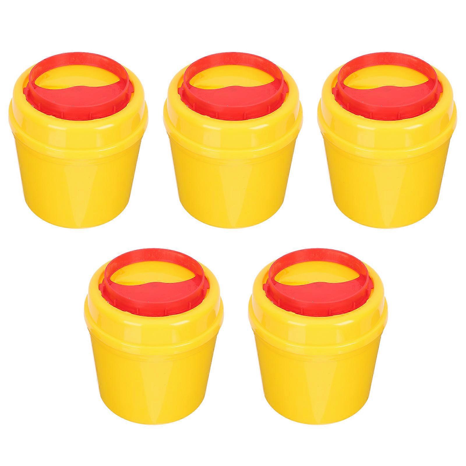 Needle Trash Cans Round Shape for Hospital Use 5Pcs Plastic Sharps Containers