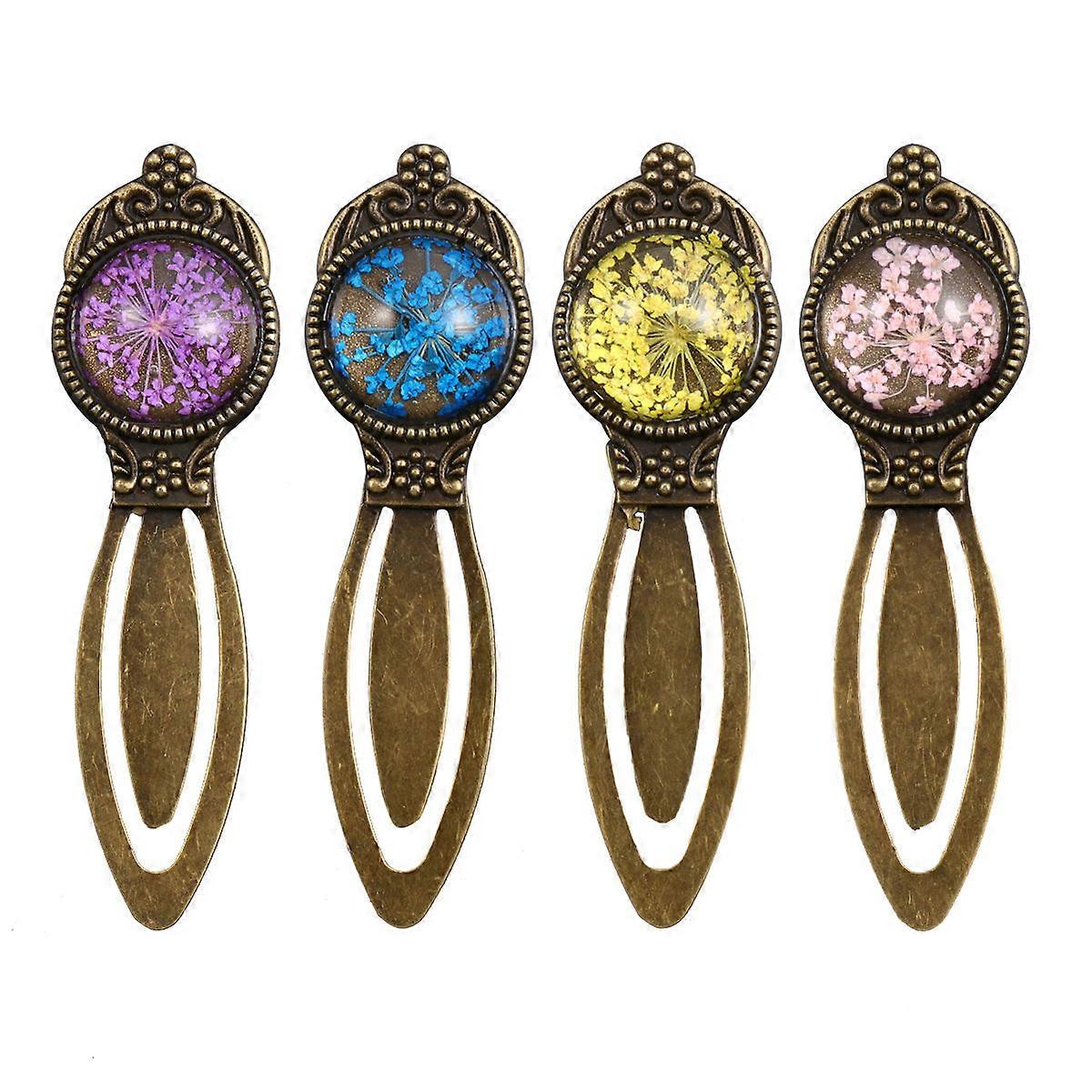 Creative Dried Flower Book Mark Metal Style for Office 4Pcs Mixed Color