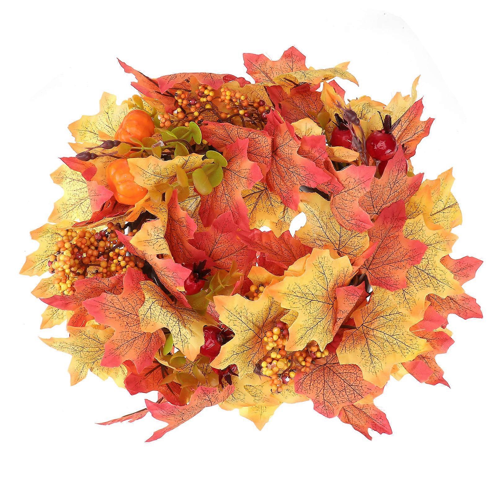 Artificial Pumpkin Wreath Door Ornament Wall Decor Orange 30x30cm Autumn Theme For Home Decoration 1Set