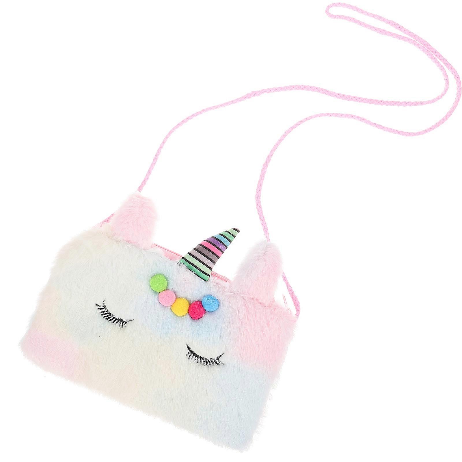 Adorable Plush Crossbody Bag With Unicorn Design For Little Girls Outdoor Storage Pink Color 1 Piece