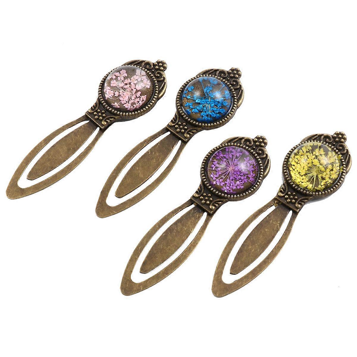 Metal Book Mark Dried Flower Type for Office 4Pcs Assorted Color