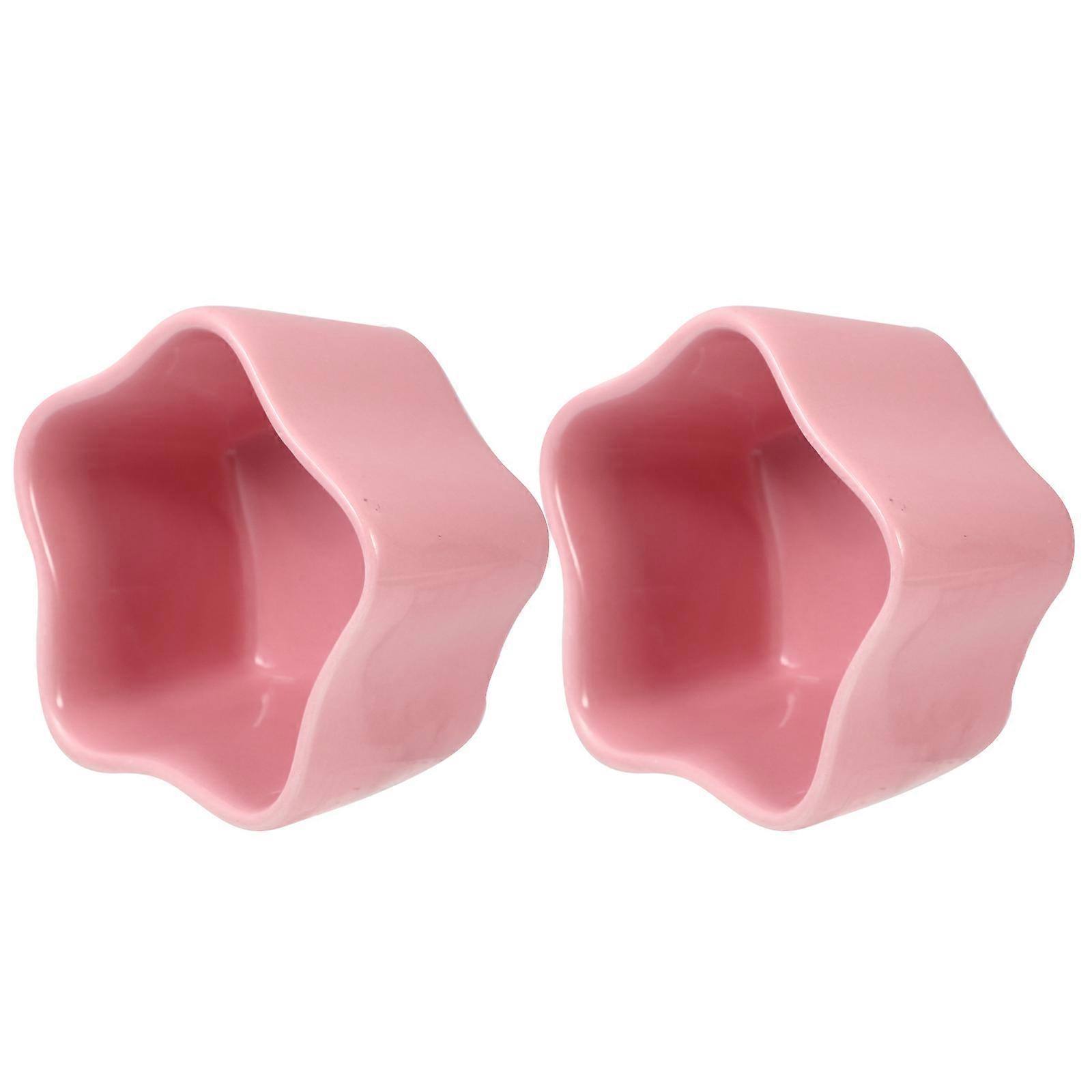 Small Animals Food Bowl Ceramic for Pet Feeding 2Pcs Pink Star Shaped