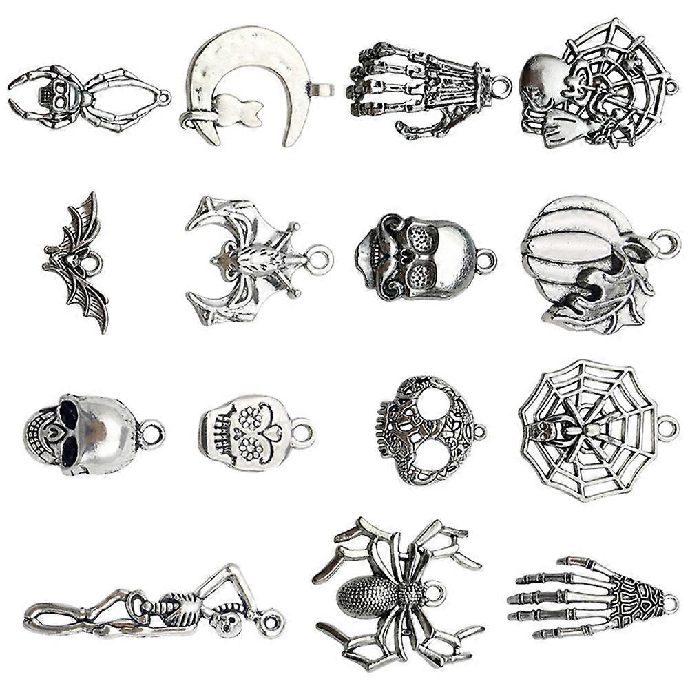 Halloween Theme Jewelry Charms Pumpkin Skull Bat Witch Ghost Silver Zinc Alloy for Keychain Making 15Pcs