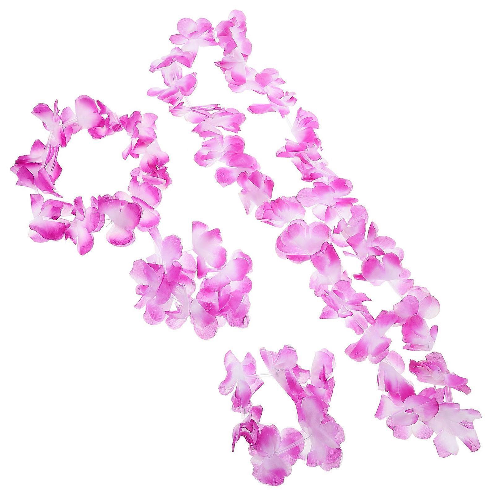 Hawaiian Headband Necklace Set for Women Luau Party 4Pcs Purple Cloth