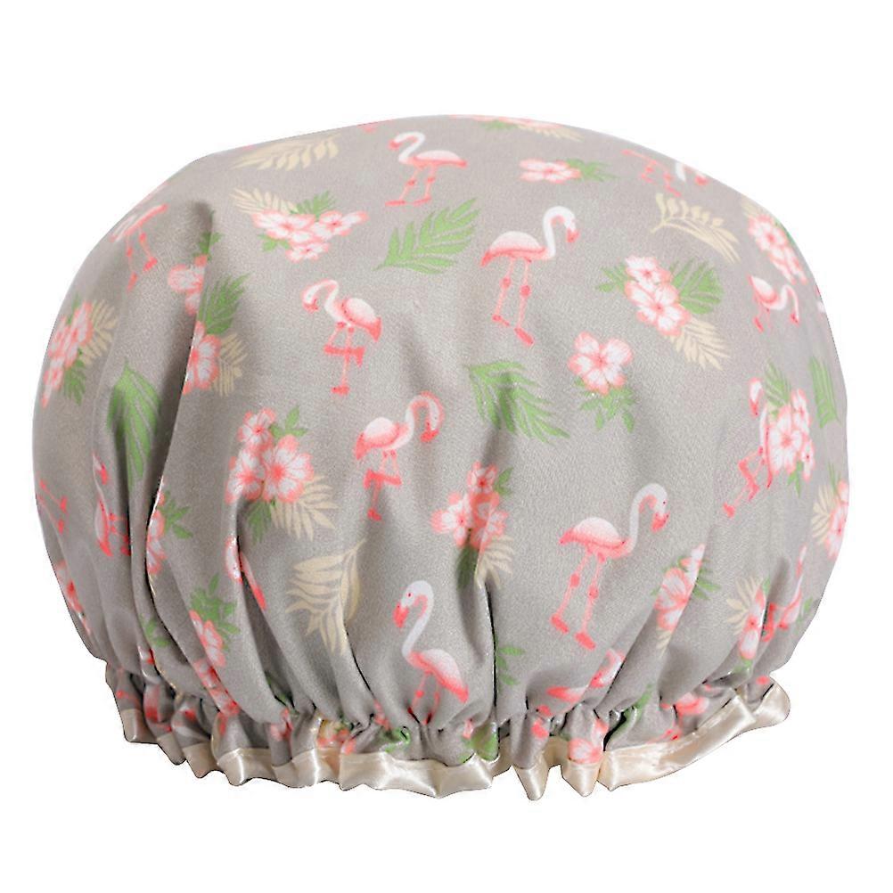 Shower Cap Double Layer Bathing Hat for Shower Use with Grey Flamingo Print
