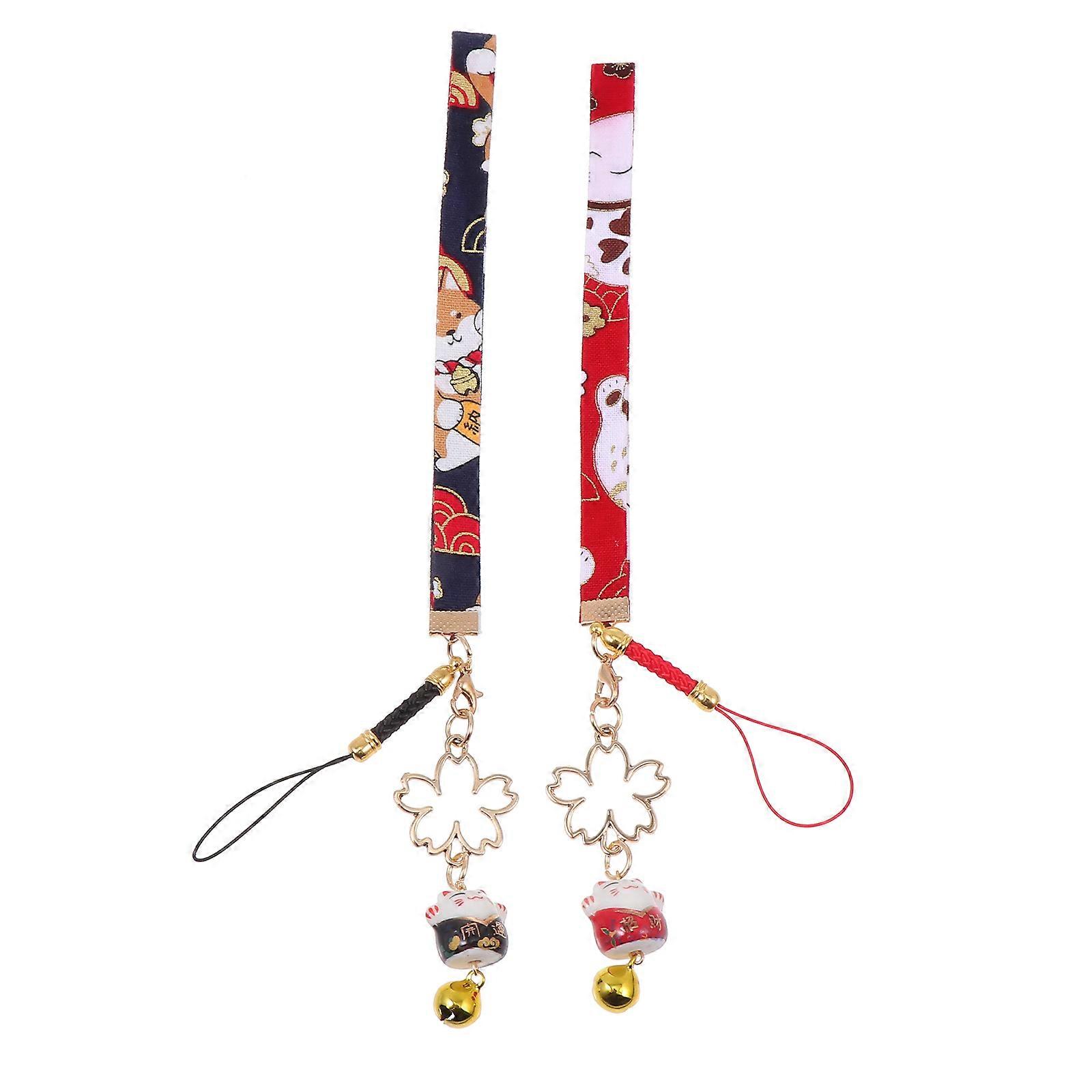 Cellphone Pendants Fortune Cat for Phone 2Pcs Black Zinc Alloy Bell Hanging