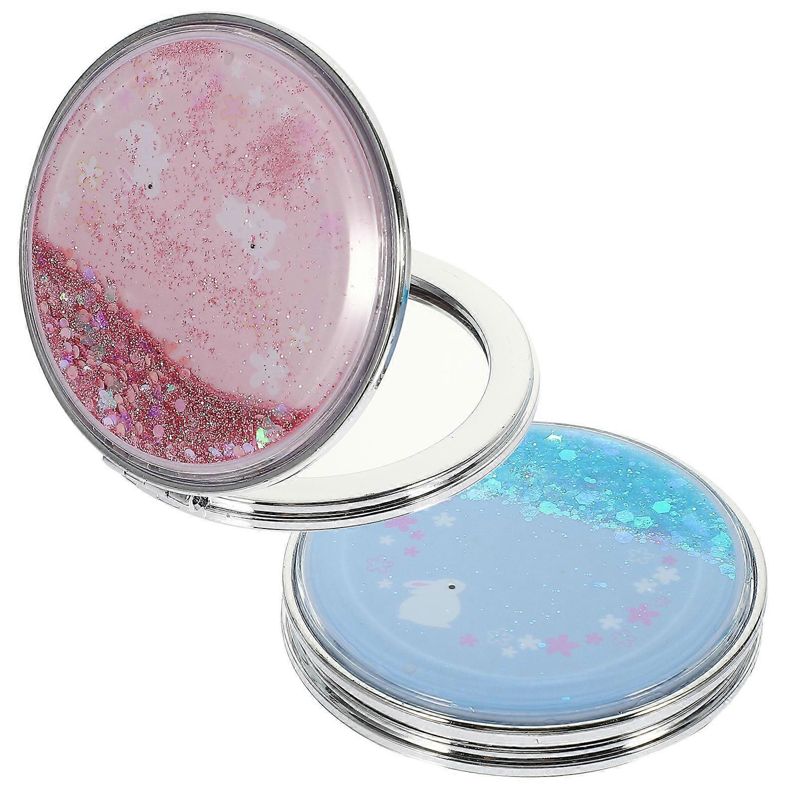 Handbag Mirror Compact Round Portable Cosmetic Mirrors for Girls Women Pink and Blue 2Pcs