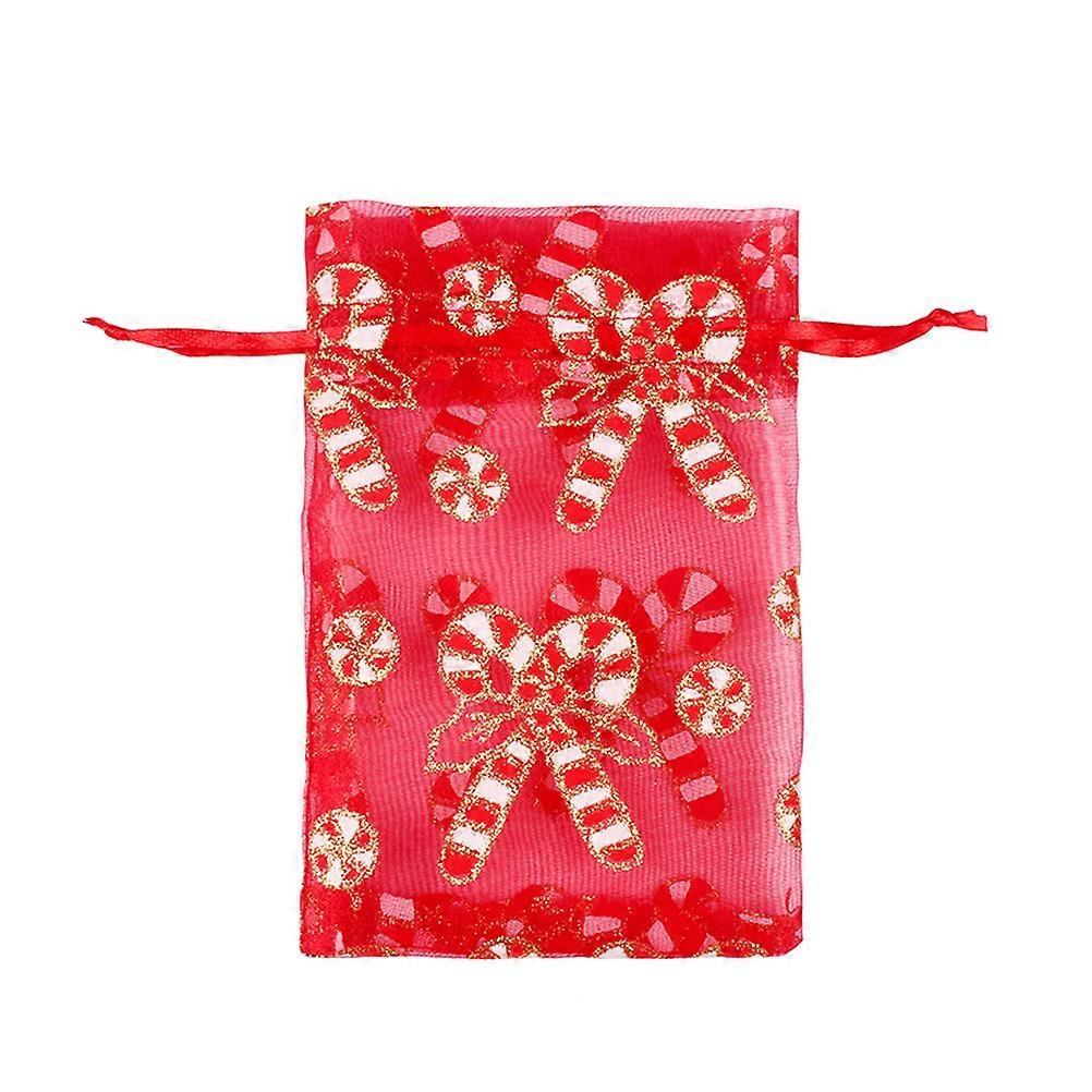 Party Goodie Bags Christmas Cane Drawstring Pouches Red 18.00X13.00X0.10CM Eco-Friendly Durable 10Pcs