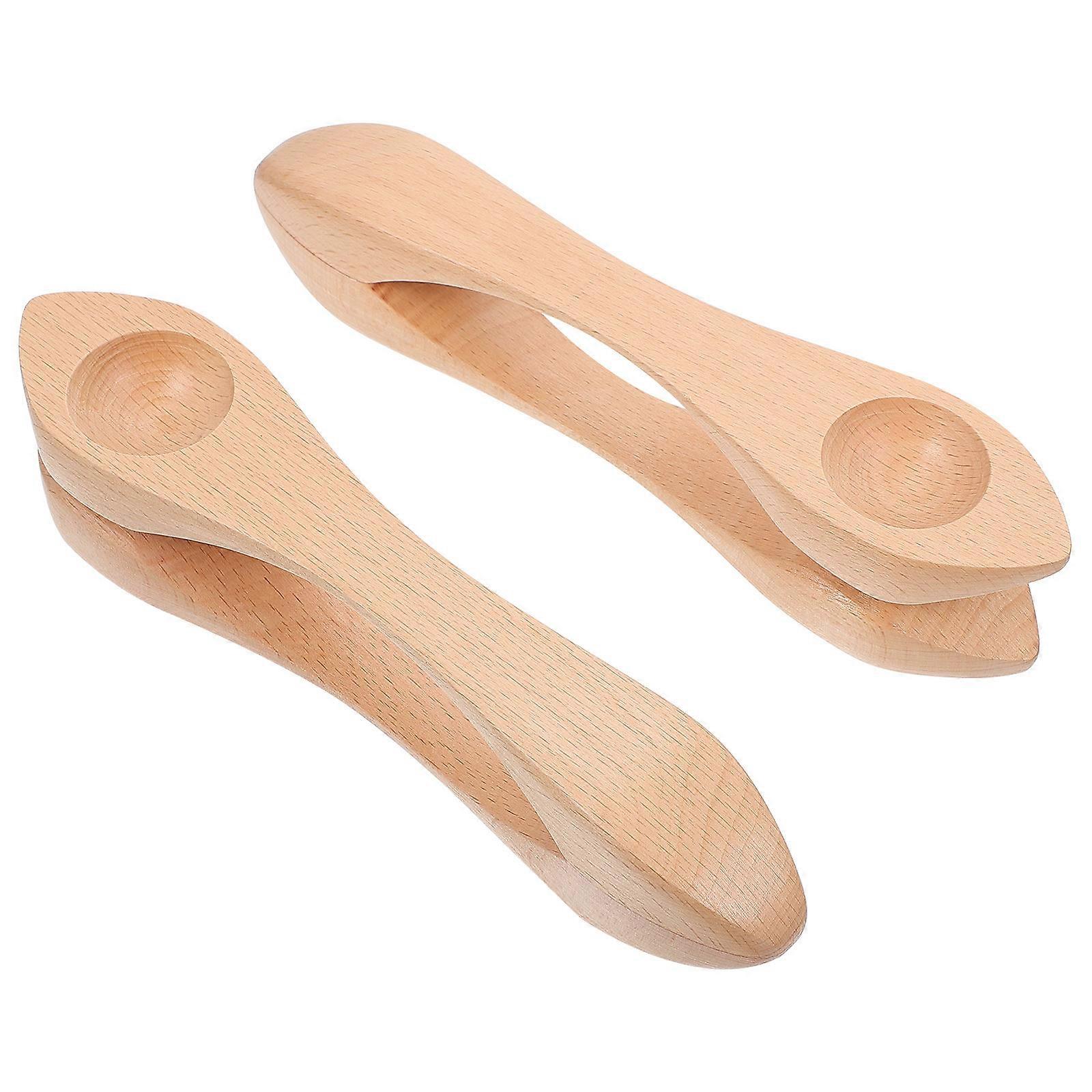 Natural Wood Musical Spoon for Kindergarten Performance 2Pcs Percussion