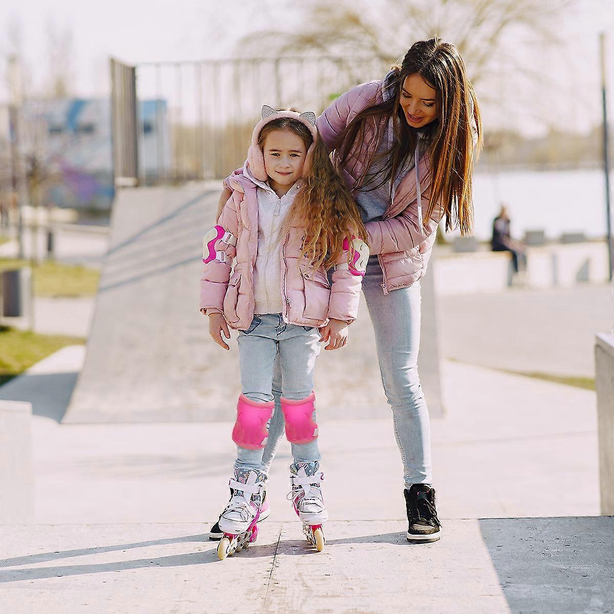 Kids Wheel Protective Gear Roller Skating 6Pcs Protective Pads Set Pink