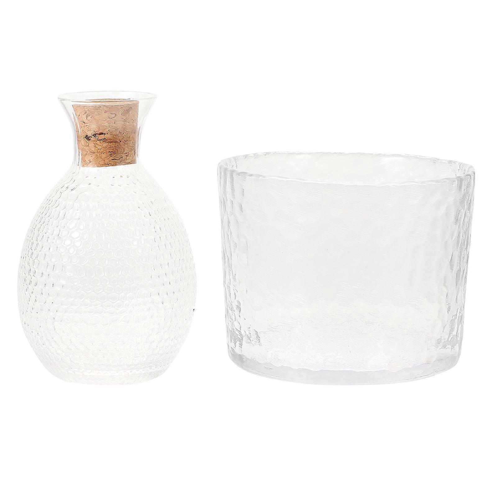 1Set Japanese Style Glass Wine Jar Hammer Pattern for Wine Use Transparent