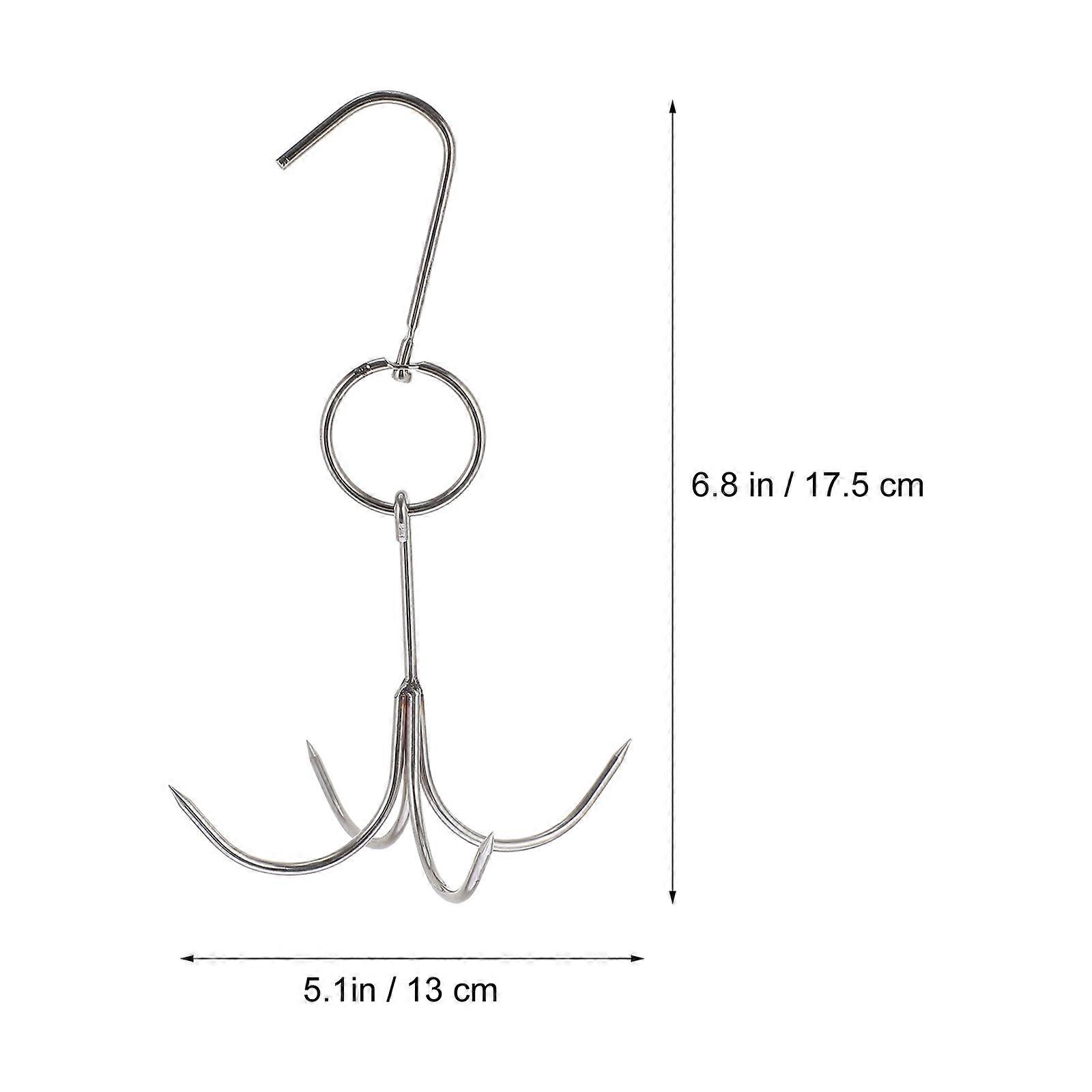 Silver Four-Prong Meat Hook Stainless Steel for Hanging Meat 1Pcs