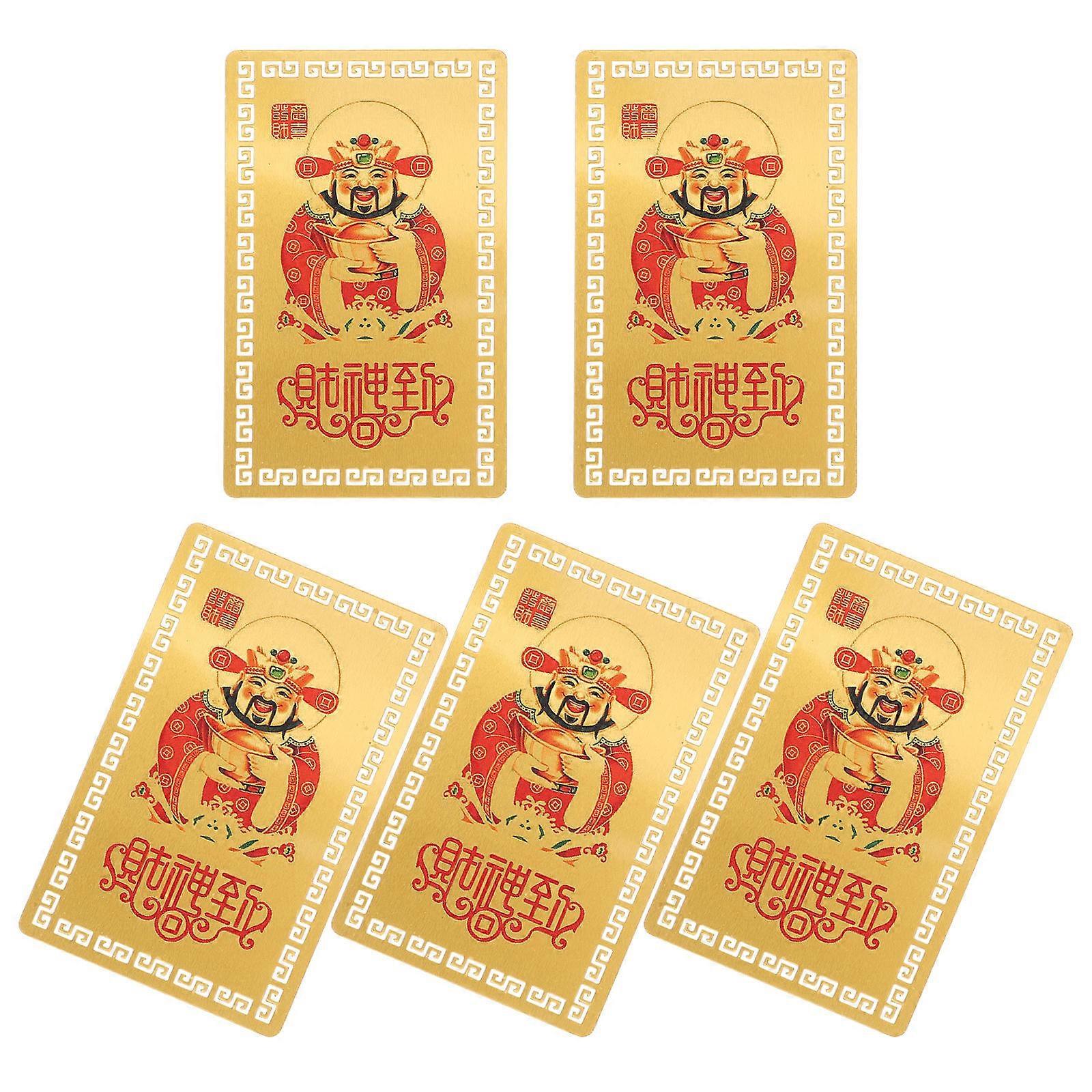 Feng Shui God of Wealth Card for Protection 5Pcs Golden Chinese Amulets