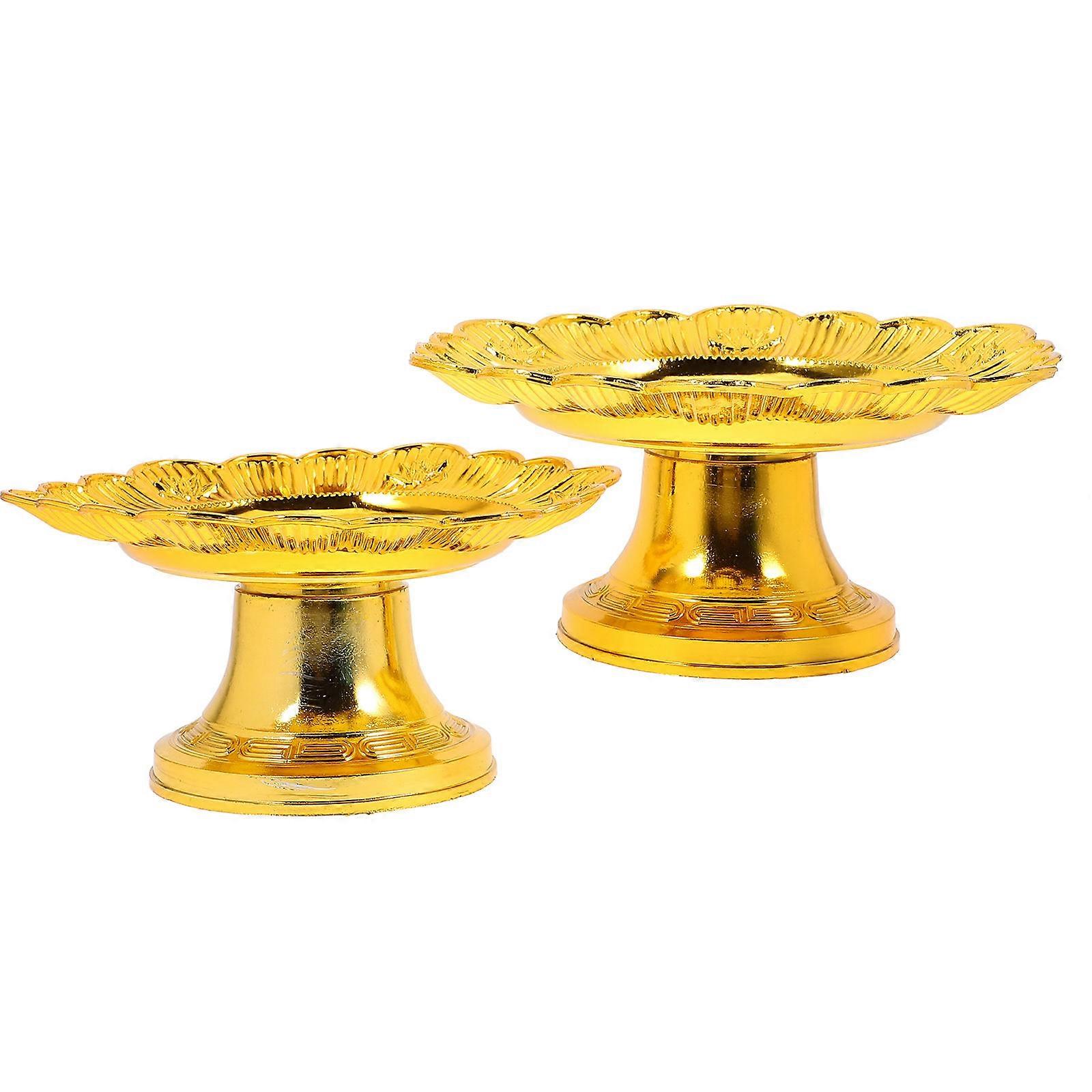 Golden Buddhist Offering Plastic Plate for Fruit and Dessert 2Pcs Set
