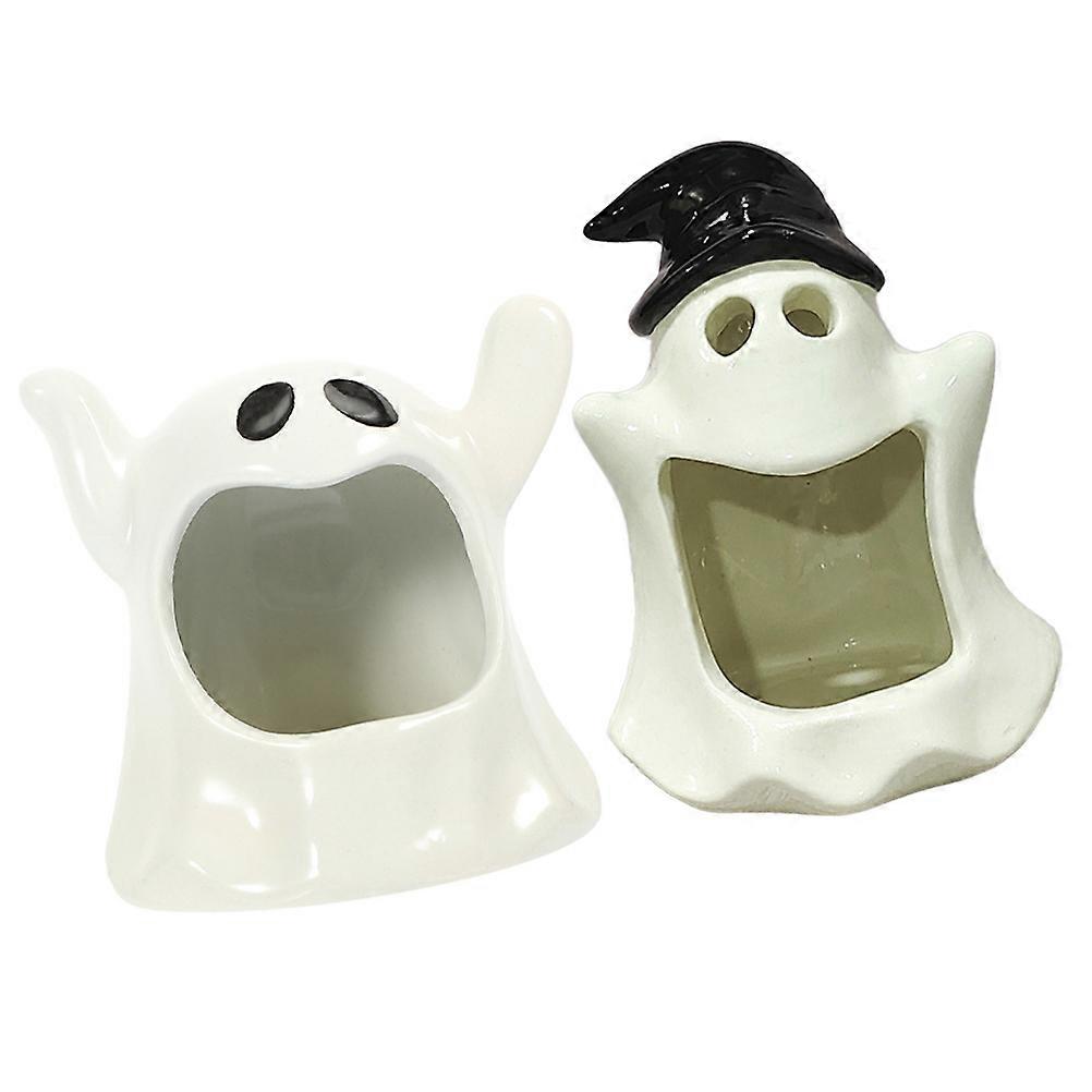 Ghost Tealight Holder Ceramic Halloween Candle Holder 2Pcs for Festival