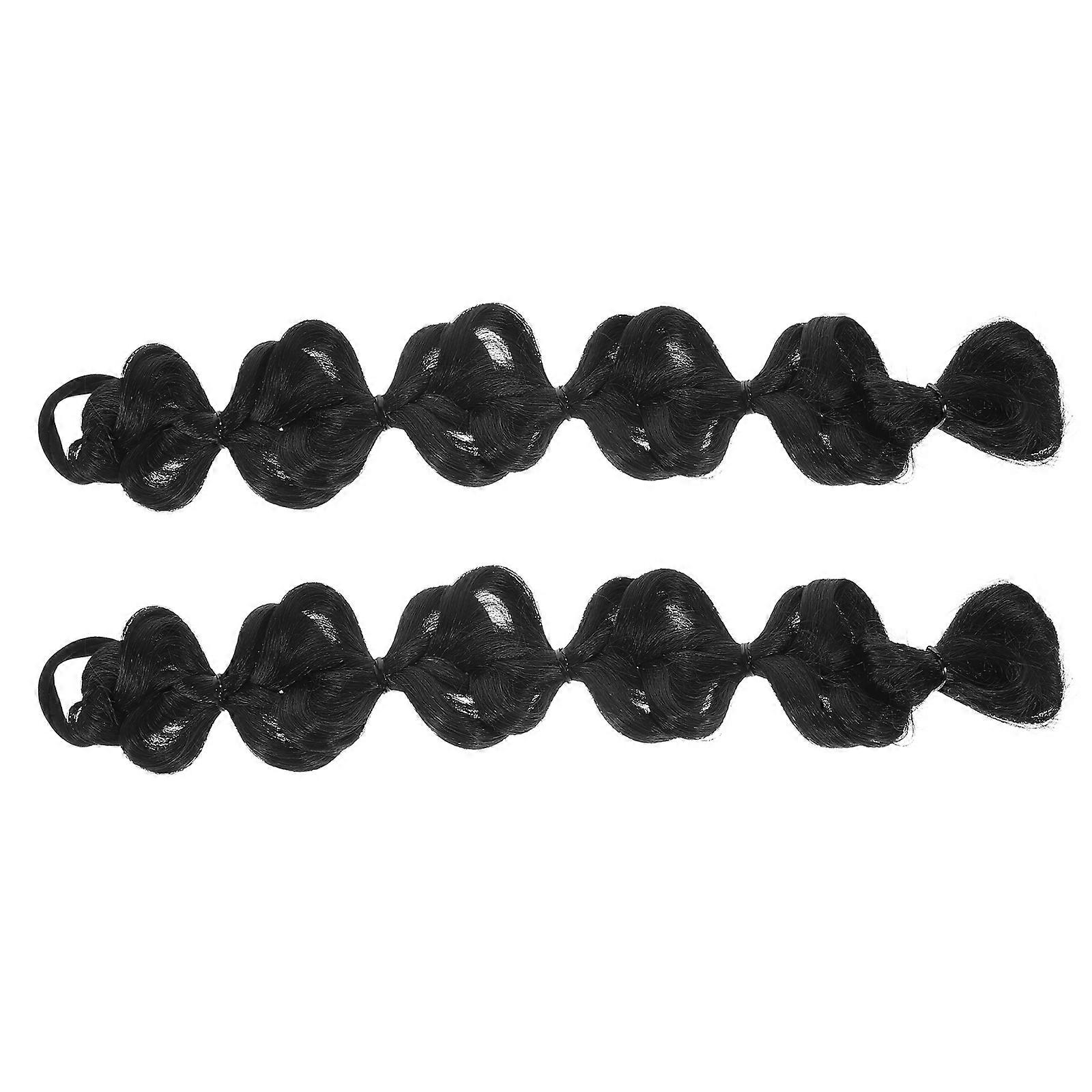 Synthetic Braid Ponytail Hairpieces for Women 2Pcs Black Extensions