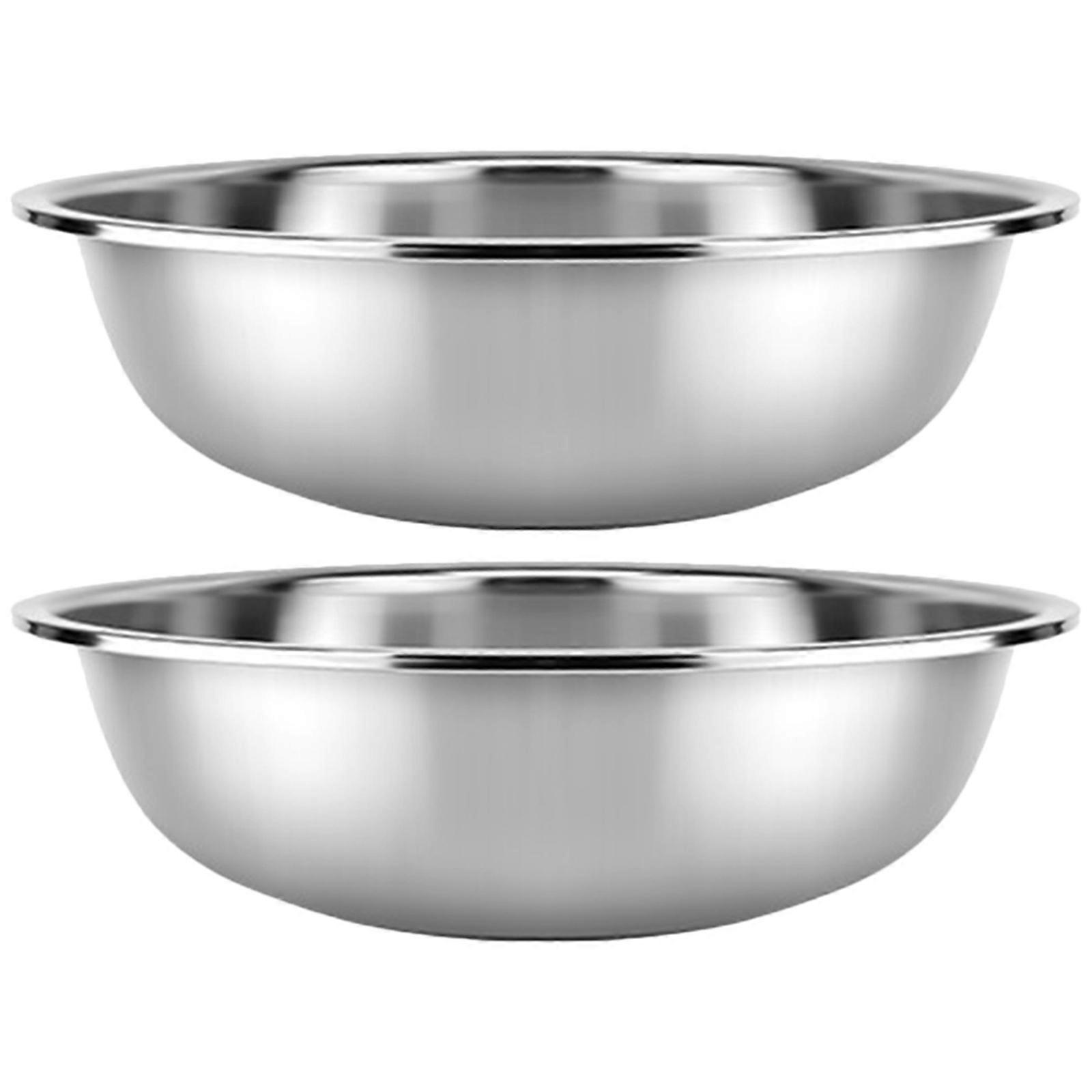 Our Stainless Steel Basin is great choices for your kitchen. The basin is made of reliable stainless steel material, which has anti-wear and anti-rust functions. This mixing basin have a wide range of uses, suitable for mixing dough, washing rice, washing vegetables, washing fruits or even making washbasins. Features - Color: Silver -Material:Stainless Steel - Size: 27.00X27.00X7.80cm/10.61X10.61X3.07in -Good stainless steel material that is sturdy and practical. Stainless Steel Basin can be used for a long time. -The flat bottom, anti-slip design, which is more stable and safe to . Stainless Steel Basin is very useful. -Multi-functional, and this large basin can wash rice, fruit and vegetables, beat eggs, noodles, etc. -Large size design, multi- function, suitable for your different needs, convenient and practical. -It's much more convenient than a or a slotted , and it doesn't take up any more space. Package list: 2 x Stainless Steel Basins