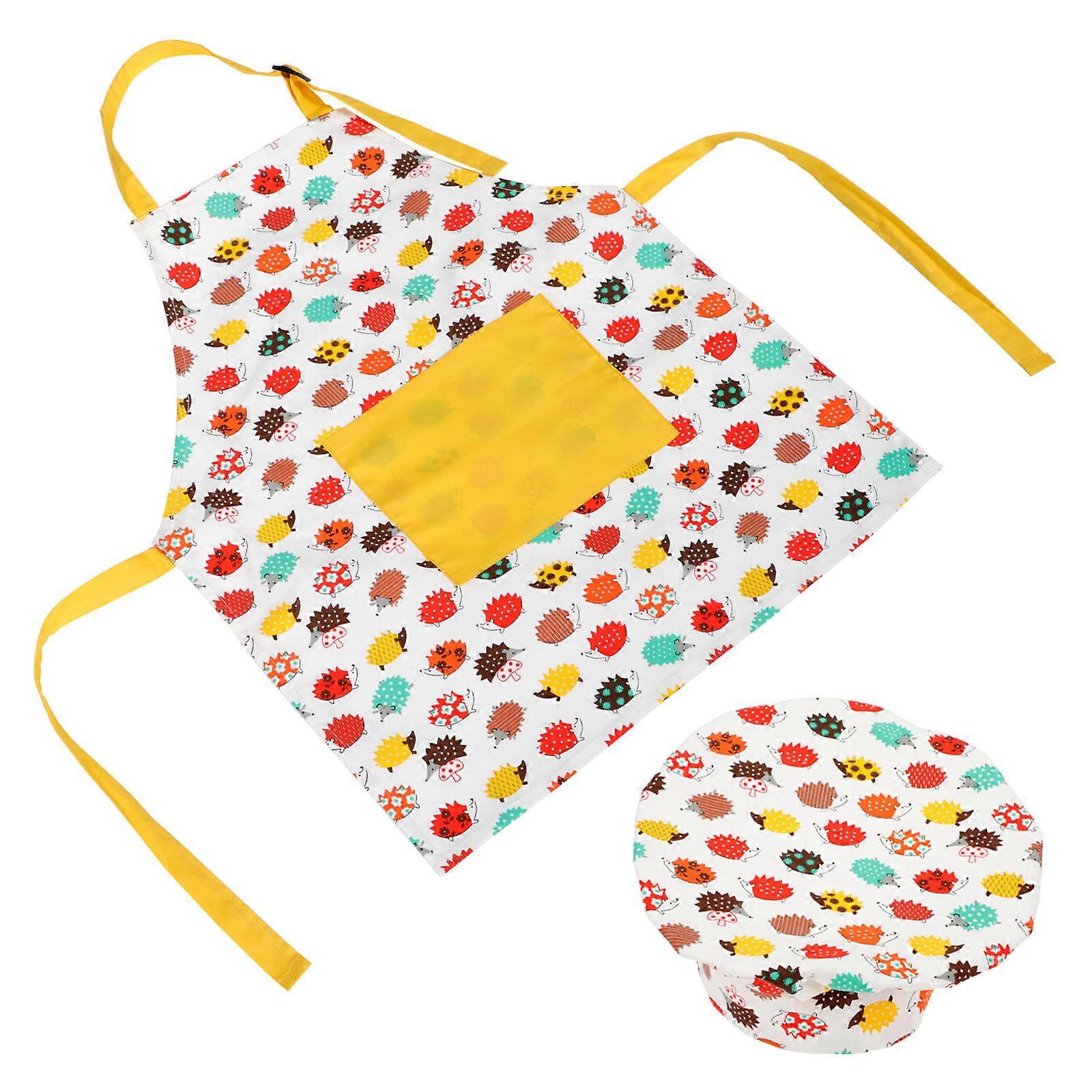 Kids Apron and Chef Hat Cotton Apron for Cooking 1Set with Assorted Colors