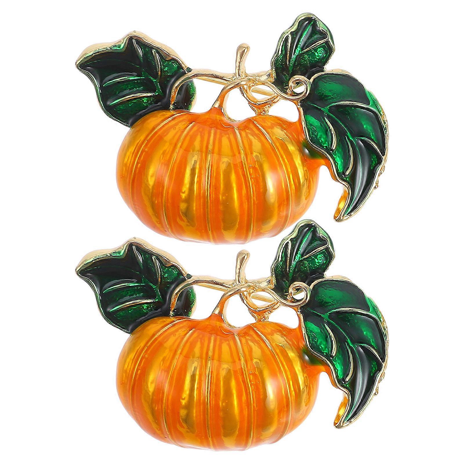 Party Brooches Pumpkin Breastpin for Wearing 2Pcs Alloy Golden Brooches