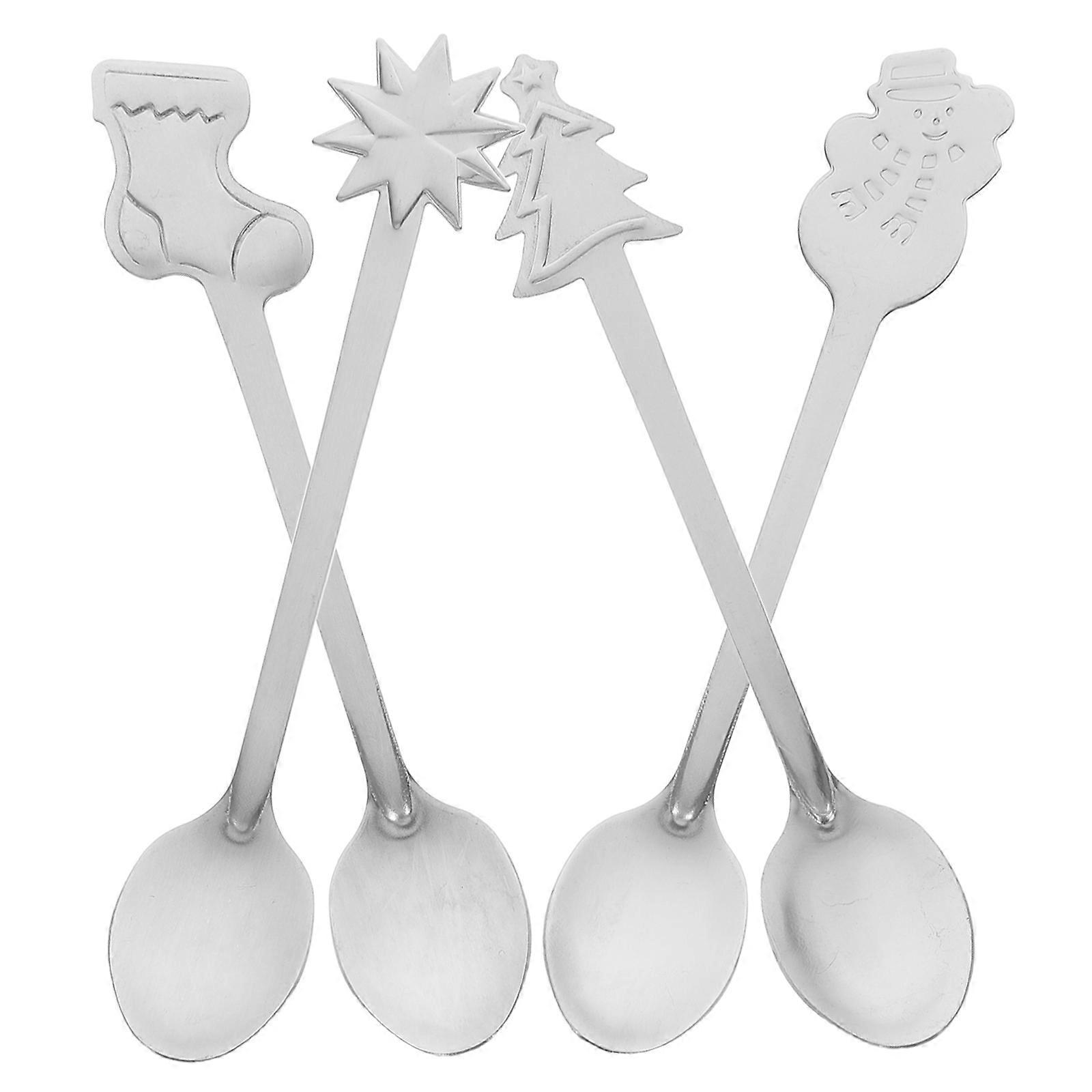 Xmas Cartoon Stainless Steel Coffee Spoon for Mixing 4Pcs Silver Tableware