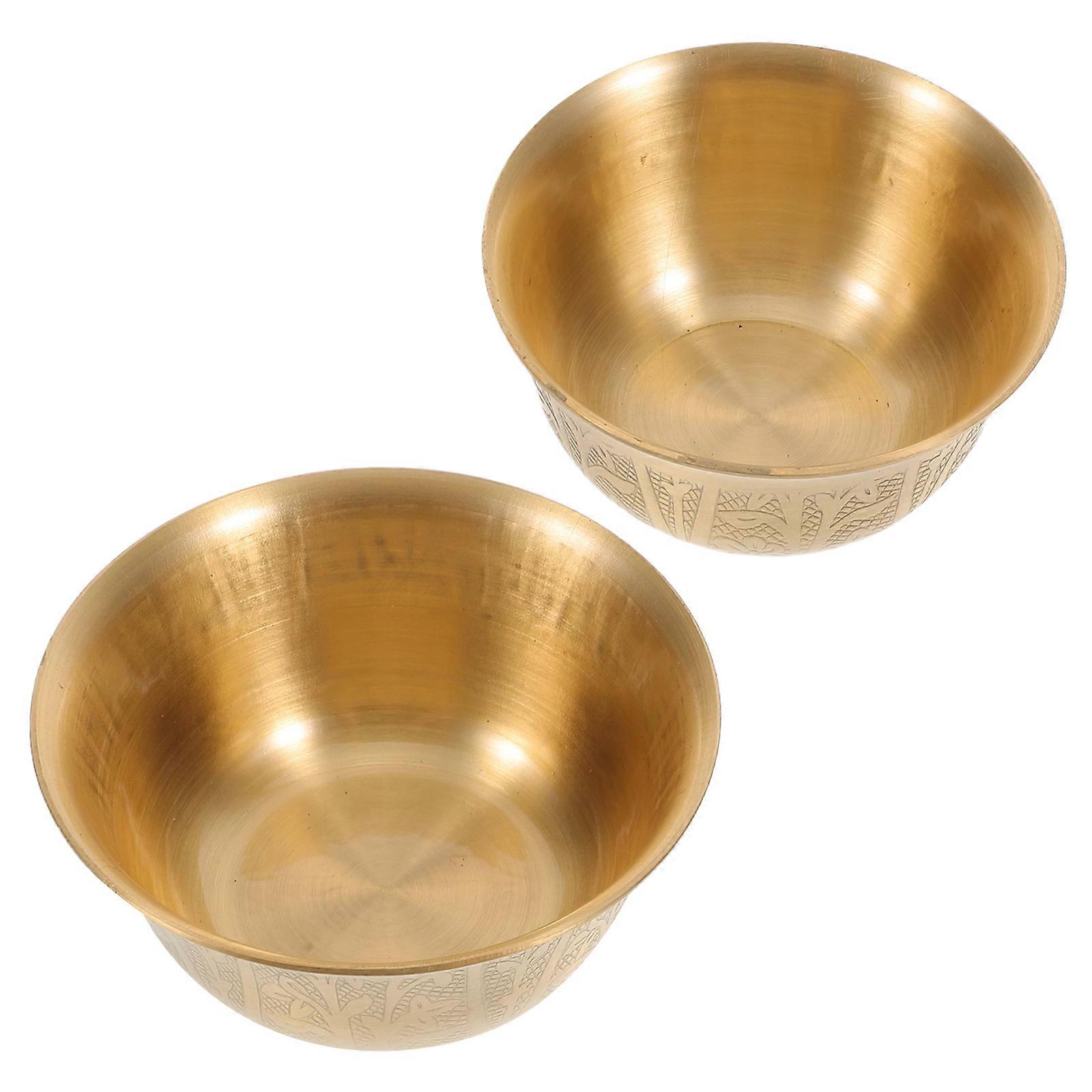 Brass Temple Bowl for Worship Rituals 2Pcs Copper Offering Bowls for Altar
