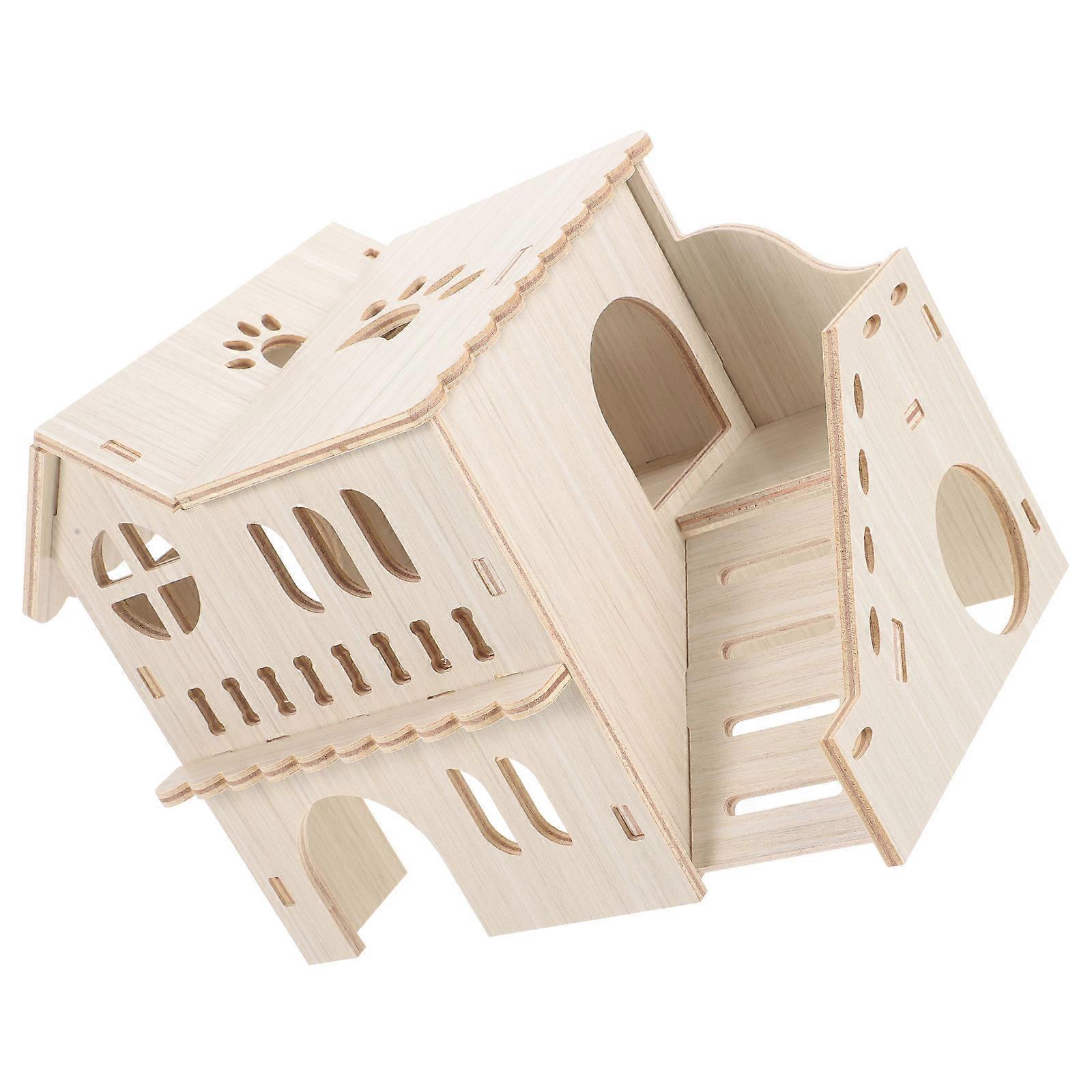Wooden Hamster Habitat for Playing with Villa and Climbing Ladder