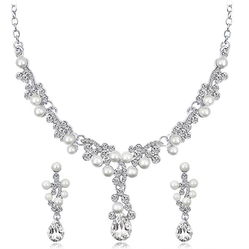 Rhinestone Necklace Earrings Set for Decoration 1Set Silver Alloy Jewelry
