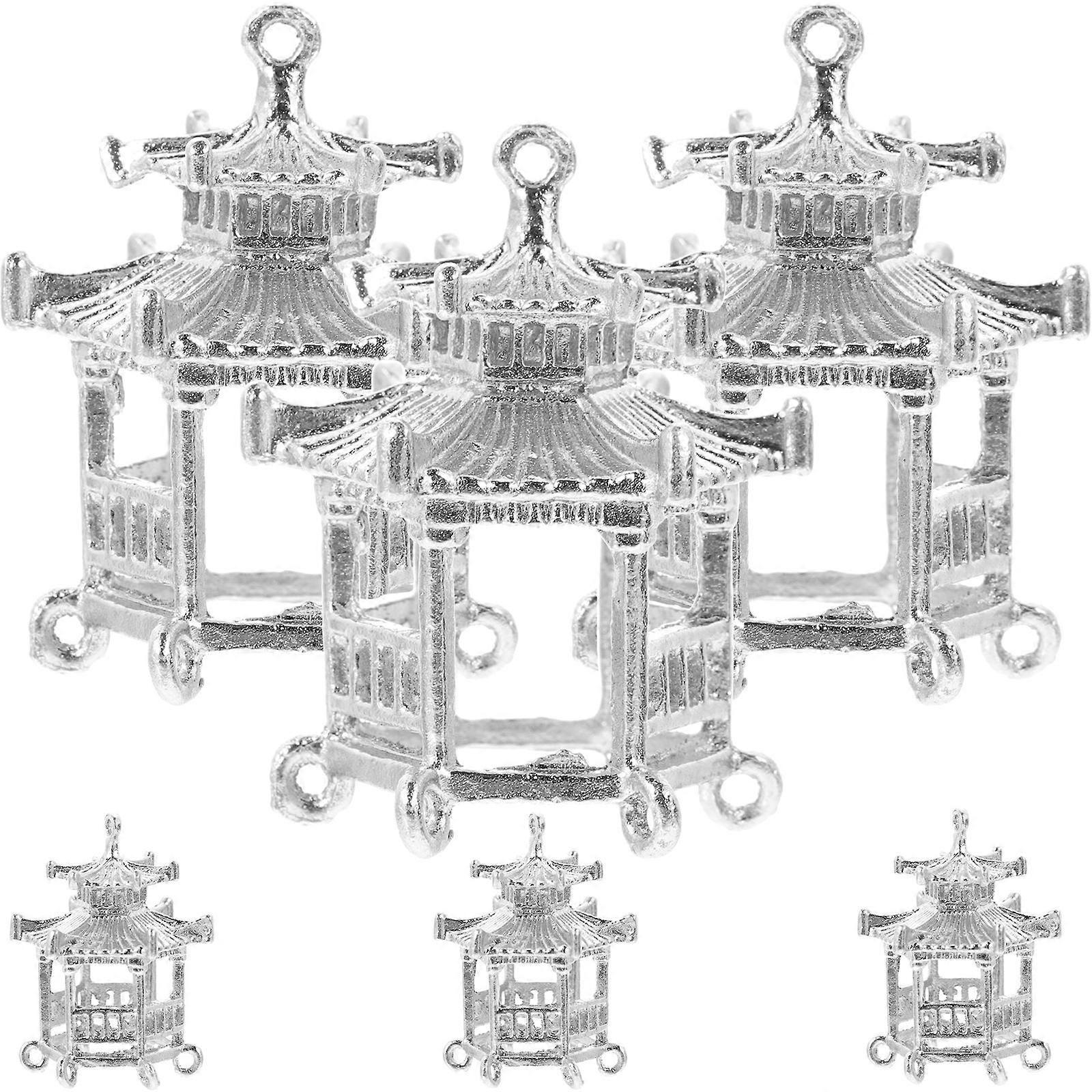 Pavilion Shape Alloy Charms for Jewelry Making Silver 6Pcs Set