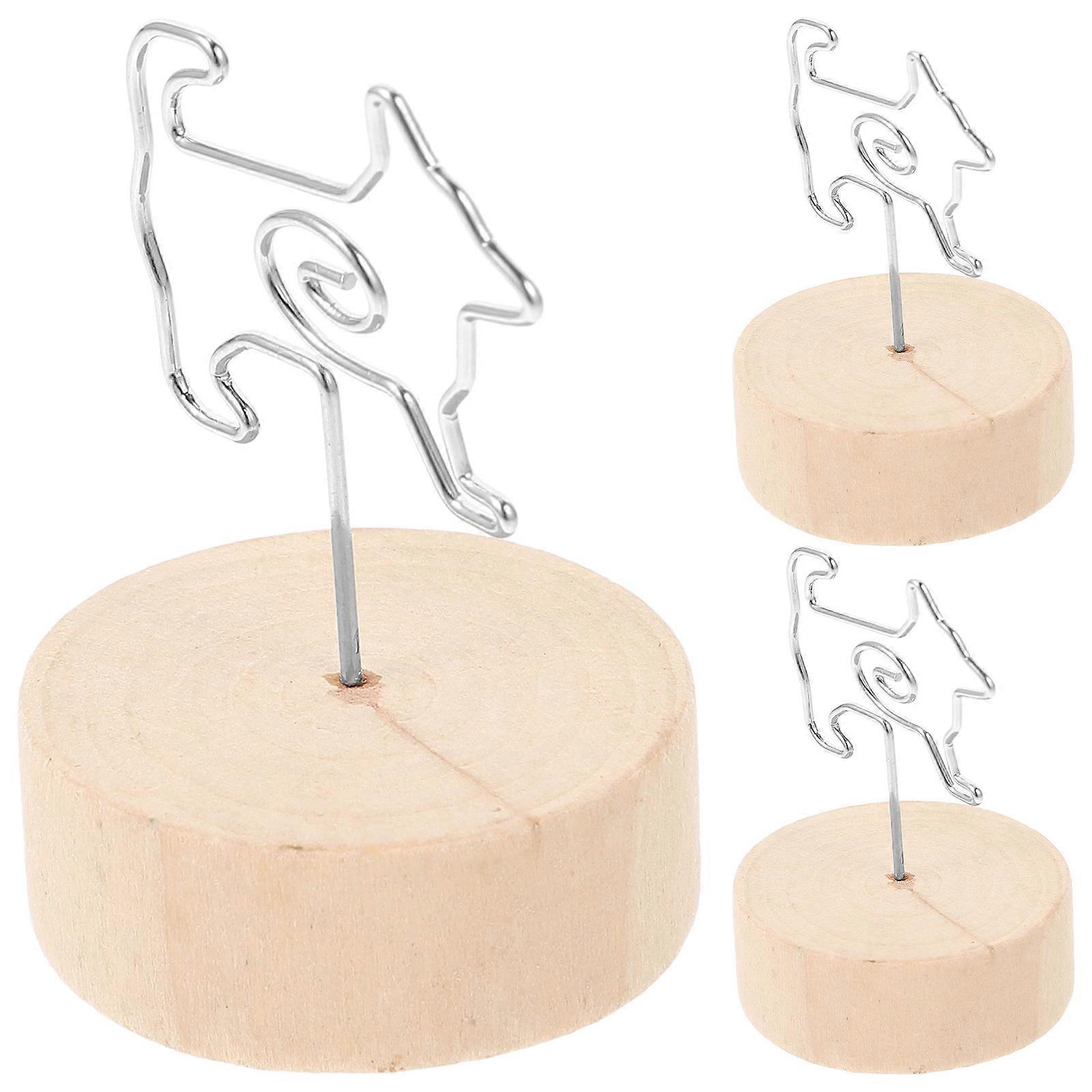 Animal Note Clip Table Sign Stand for Cards 3Pcs Beige Metal Wood