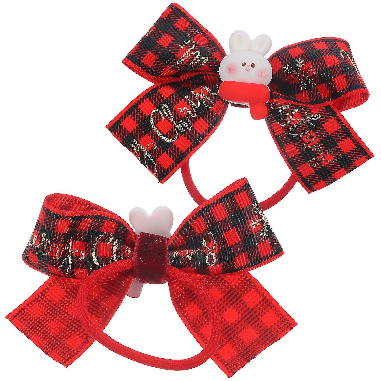 Bow Hair Ties for Girls Christmas Elastic Hair Tie 2Pcs Red Fabric