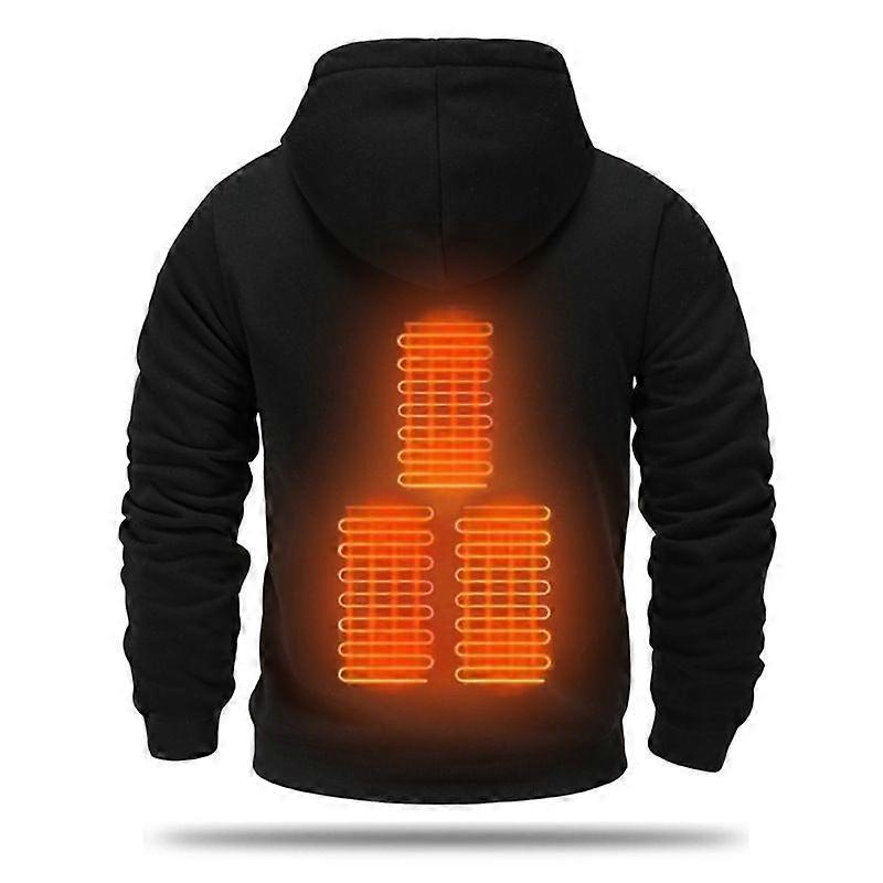 Men's Usb Heating Velvet Sweater Thickened Warm Outdoor Casual Clothing Hooded Electric Heating Sweater