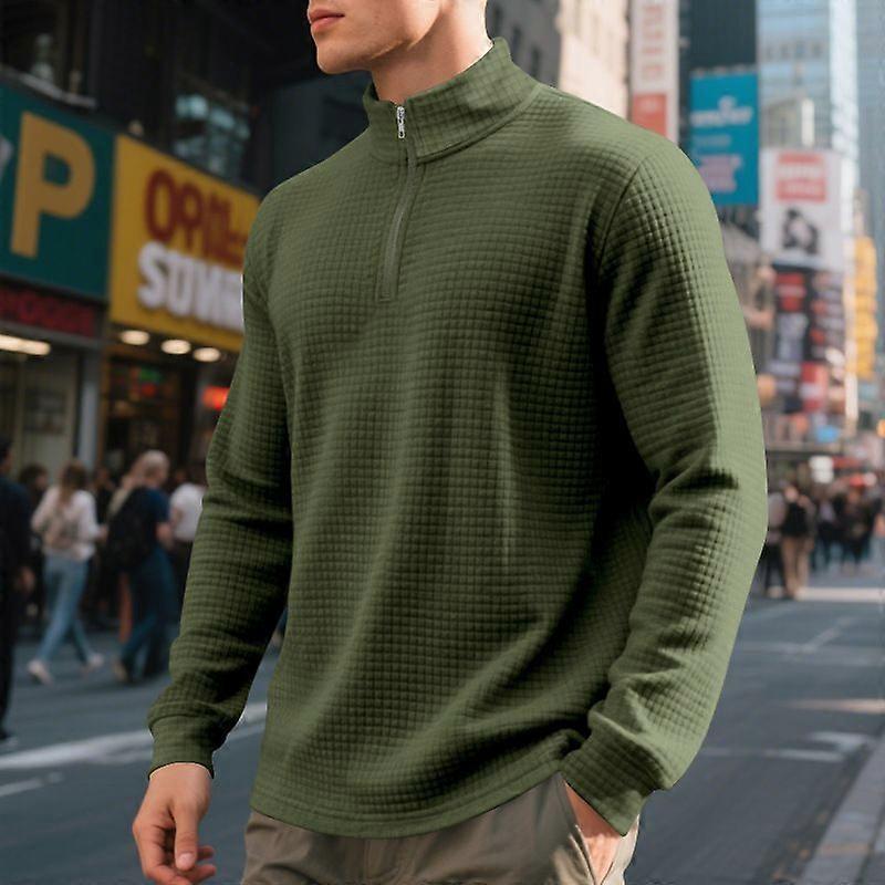 American Simple And Casual Men's Loose Jacquard Stand-Up Collar Half-Zipper Base Layer Sweatshirt For Autumn And Winter
