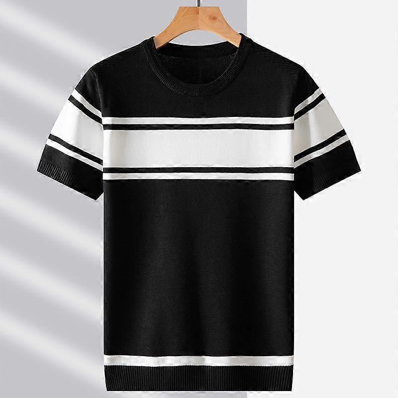 Round Neck Sweater Men's Spring And Autumn Loose Casual Short Sleeve Male Youth Less Pure Color All-Matching T-Shirt Base Shirt