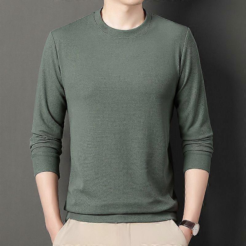 Waffles Sweater Autumn Thin Round Neck Long Sleeve T-Shirt Solid Color Men's Base Shirt Men's Top