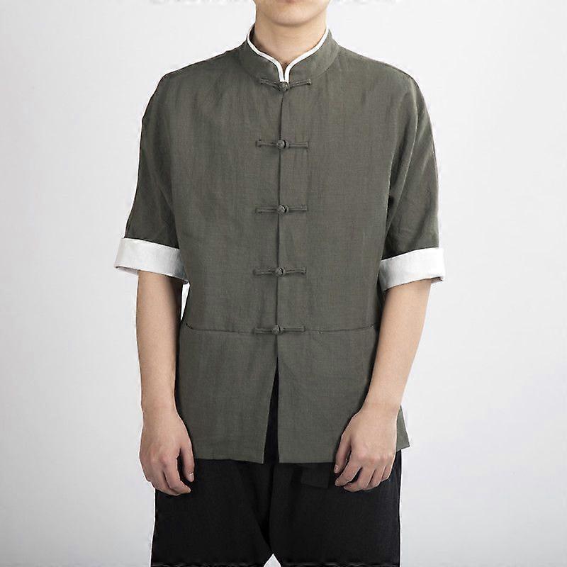 Spring Summer Chinese Style Men's Stand Collar Cotton And Linen Men's Tang Suit Chinese Frog Button Short Sleeve Shirt