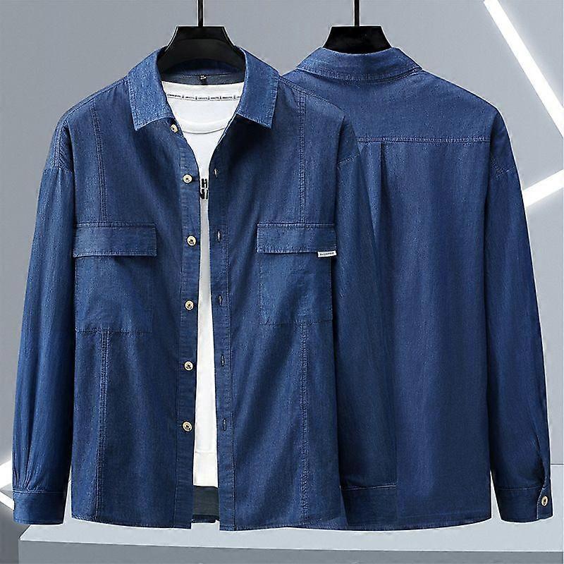 Plus-Sized Plus-Sized Denim Cotton Shirt Long Sleeve Overweight Man Spring And Autumn Trends Casual 180.00Kg Plus Size Men's Clothing