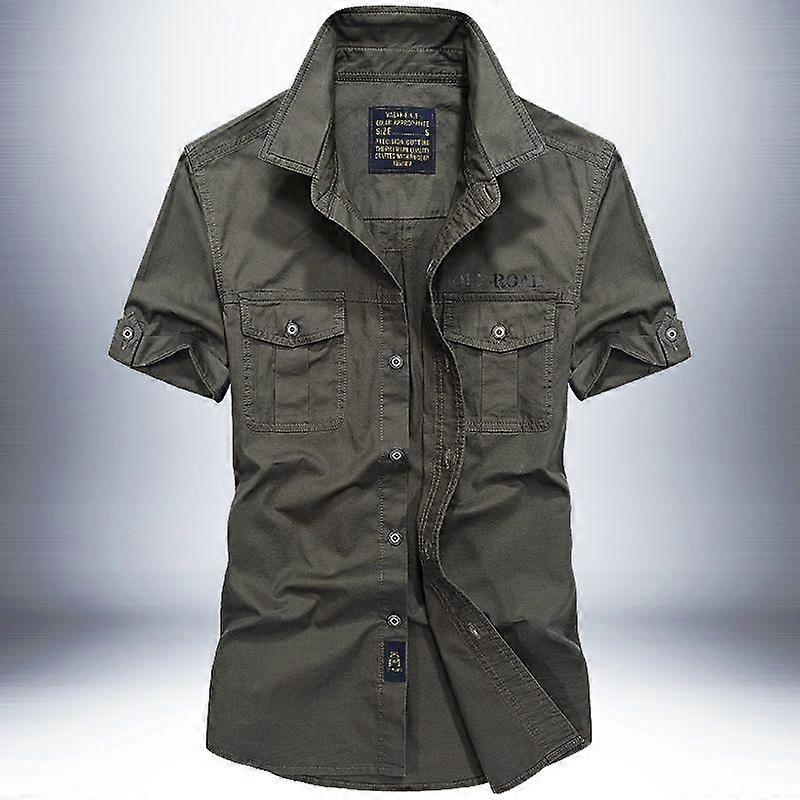 Summer Men's Clothing Short Sleeve Shirt Washed Cotton Army Loose Large Size Outdoor Work Clothes Shirt Fashion