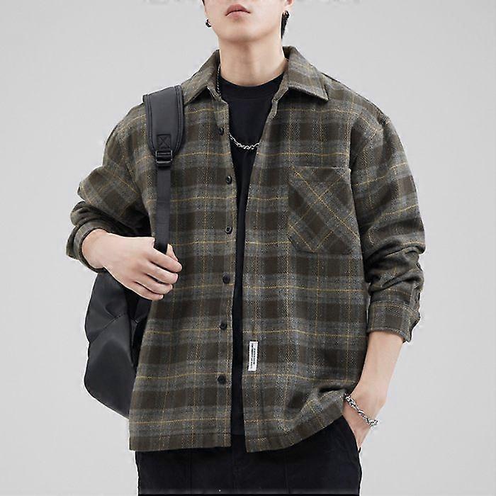 Fabric Name:Cotton Blended Material Function:Machine Washable Fabric Count:20 Style:Fashion City Amoy Category:Fashion City (-35 Years Old) Style:Cardigan Version Type:Loose Type Collar Type:Lapel Sleeve Length:Long Sleeve Pattern:Lattice Thickness:Thickening Error Range:1-3Cm Style Details:Pocket Decoration Suitable For The Crowd:Green Main Fabric Ingredients:Cotton Content Of Main Fabric Composition:96% And Above Applicable Scene:Leisure Color:Curry Color:Grey Size:M Size:L Size:Xl Size:2Xl Size:3Xl Size:4Xl Suitable For:Season Process:No Iron Treatment Applicable Age:Adult Applicable Gender:Male Product Category:Shir