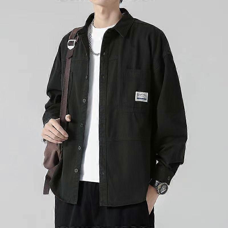 Workwear Shirt, Men's Spring And Autumn Regular Coat Shirt, Loose Long-Sleeved Cardigan Jacket
