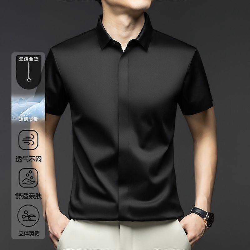 Mulberry Silk Men's Short-Sleeved Shirt, Men's Summer Stretch Business Casual Solid Color Ice Silk Shirt For Men