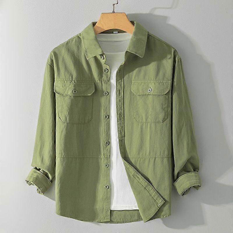 Autumn () Shirt, All-Cotton Solid Color Double-Pocket Work Jacket, Loose And Casual