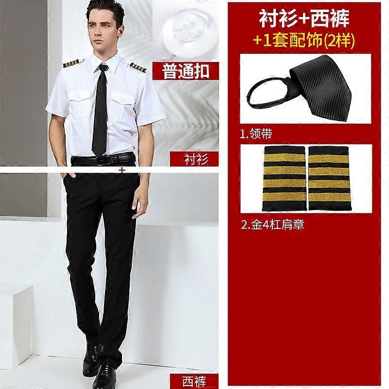 Short And Long Sleeve White Shirt Set, Captain Work Uniform, Pilot Security Uniform, Summer Uniform For Men