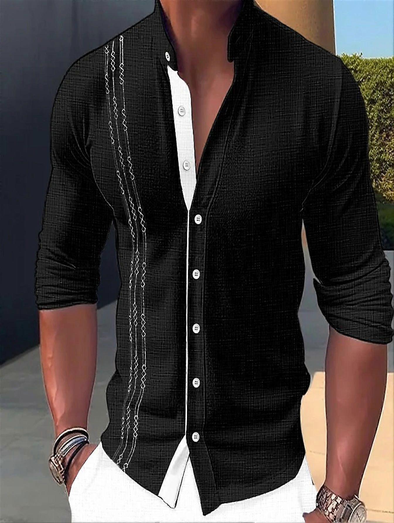 Men's Long-Sleeved Cotton And Linen 3D Printed Men's Casual Long-Sleeved Stand-Up Collar Loose And Versatile Trendy Shirt